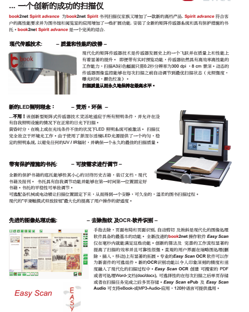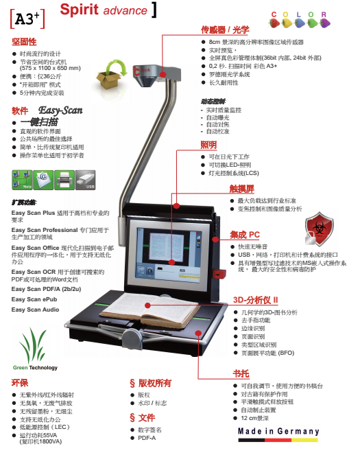 *1、為保證書刊案卷掃描的高速、耐用和使用便利的要求,要求矩陣式CCD點(diǎn)對(duì)點(diǎn)一次性彩色掃描方式。要求彩色掃描一次性完成,掃描過程鏡頭、光源不移動(dòng)、不閃爍。并且要求具備實(shí)體證物彩色立體采集功能,要求實(shí)體證物采集景深高度≥15cm。操作過程中可任意更多種語(yǔ)言選擇。